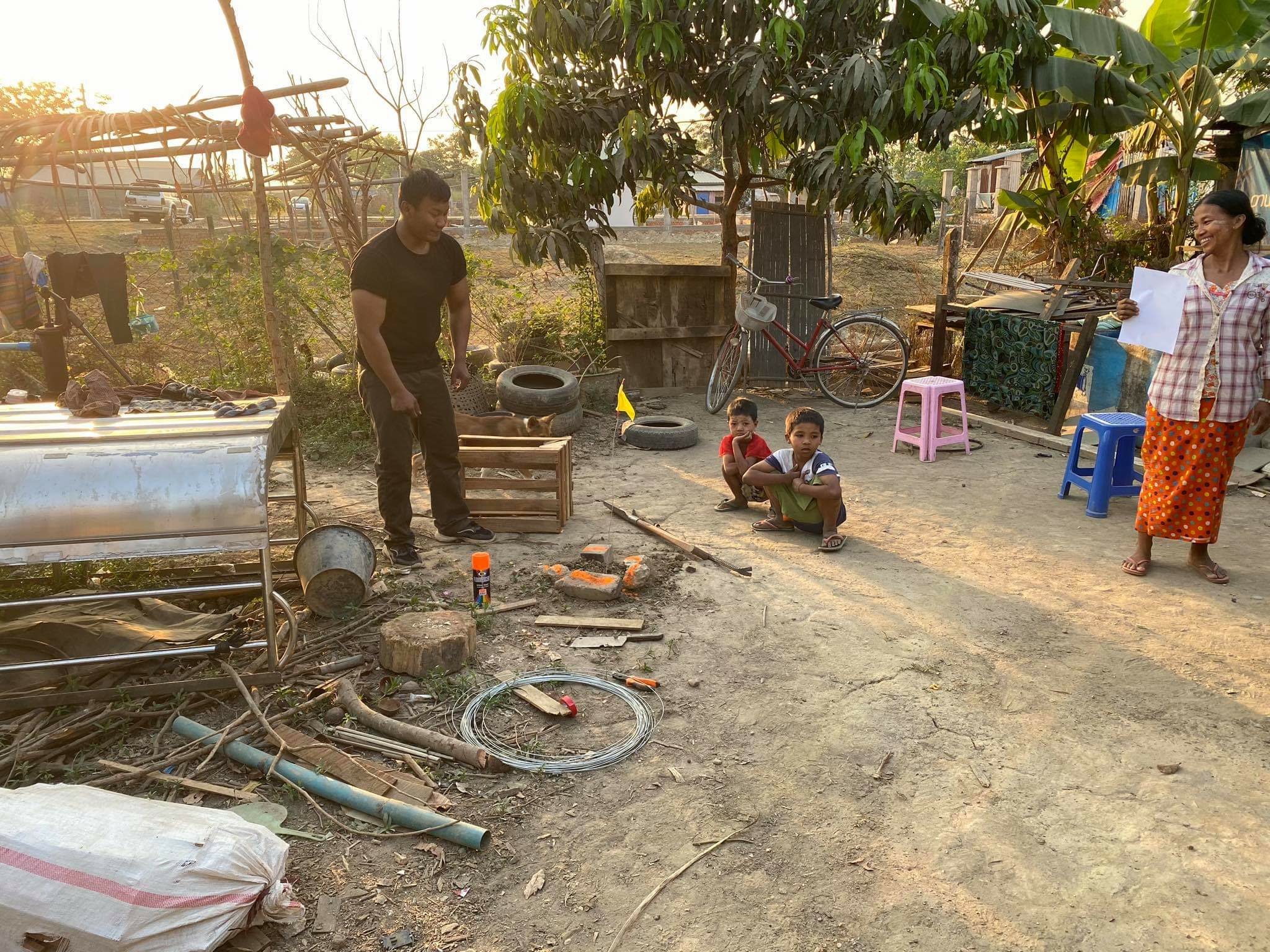 FIG. 2 Photo of the field team from the March 2020 seismic station installation in Yangon, Myanmar. The installation team is comprised of professors, lecturers and students from the Yangon region including the University of Yangon. From left to right [Back Row] Phyo Paing Than, Paye Phyo Lwin, Dr. Zaw Lin Kyaw, Dr. Myo Thant, Thiha, Aye Chit Min, Thet Naing Oo, Min Khant, Dr. Tin Myint Oo; [Front Row] Zin Myo Win and Thinzar Yadanar. FIG. 3 One site where a nodal station was installed at a family's residence in the Yangon area by Paye Phyo Lwin, a University of Yangon student (on the left). The yellow flag marks the node location.Earthquake Hazard in Yangon