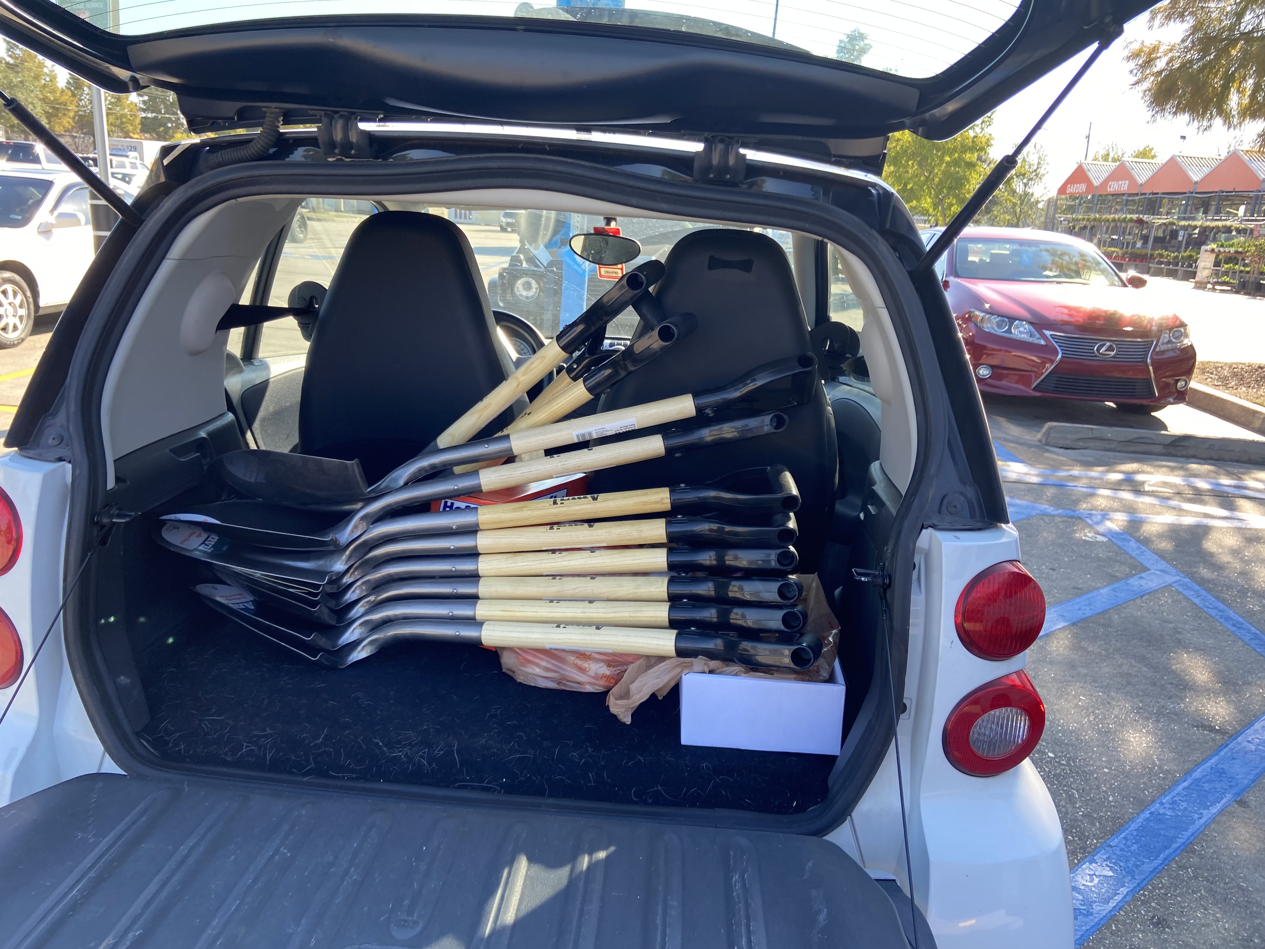 FIG. 8 Samantha and Raphael working on Line 1. FIG. 9 Just the right size shovels for a Smart car. FIG. 11 Map showing our final node array in Baton Rouge, Louisiana. FIG. 12 Map showing our final node array in Mamou, Louisiana.